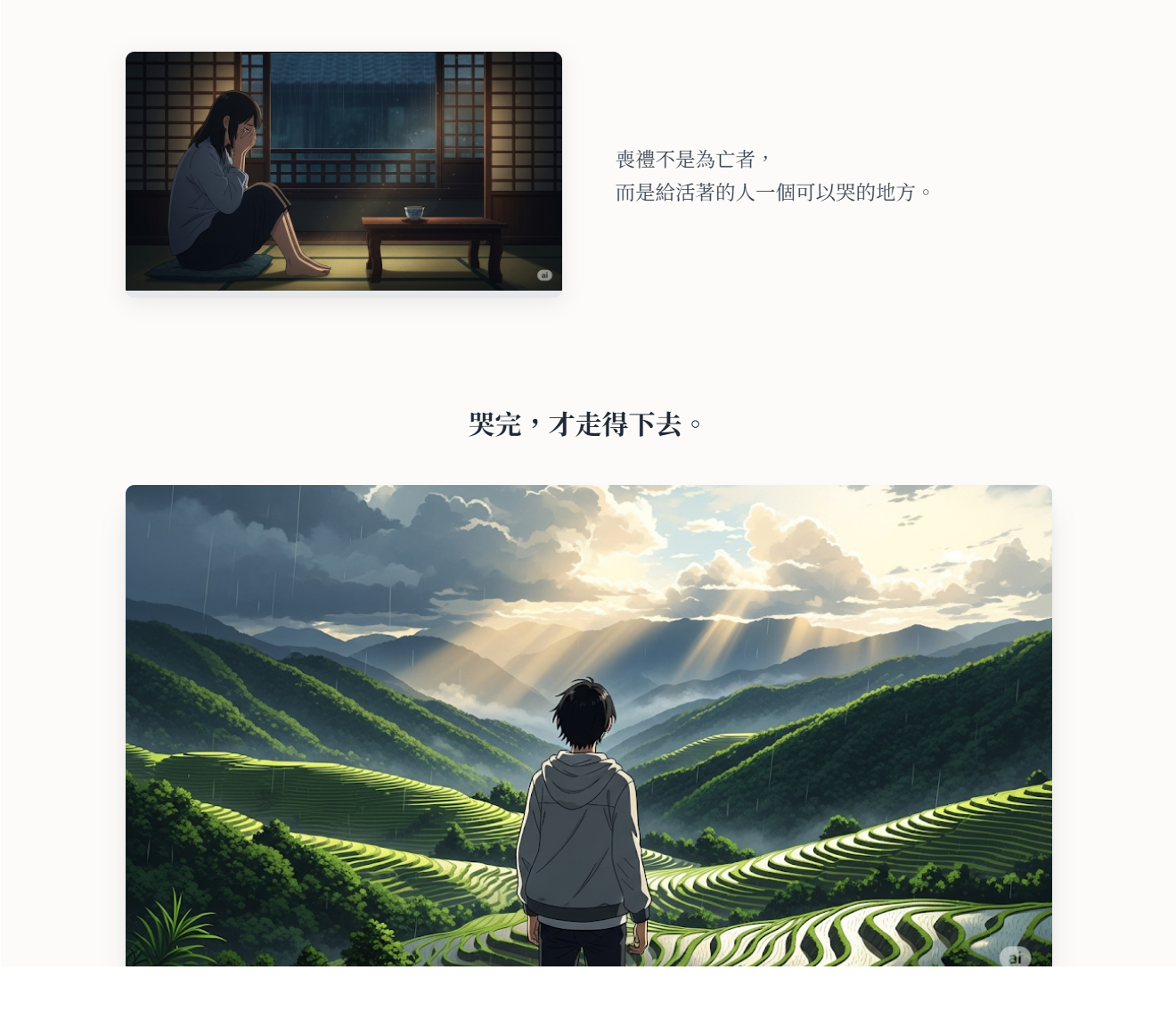 喪禮不是為亡者,而是給活著的人一個可以哭的地方。