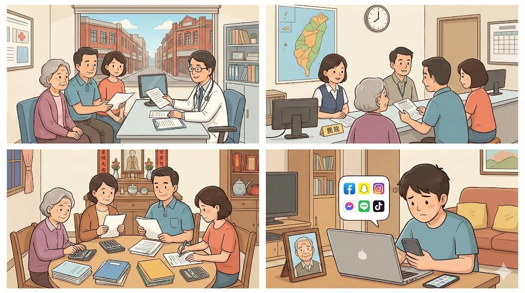 包括死亡證明申請、遺產繼承申報、社交帳號處理等時間節點,