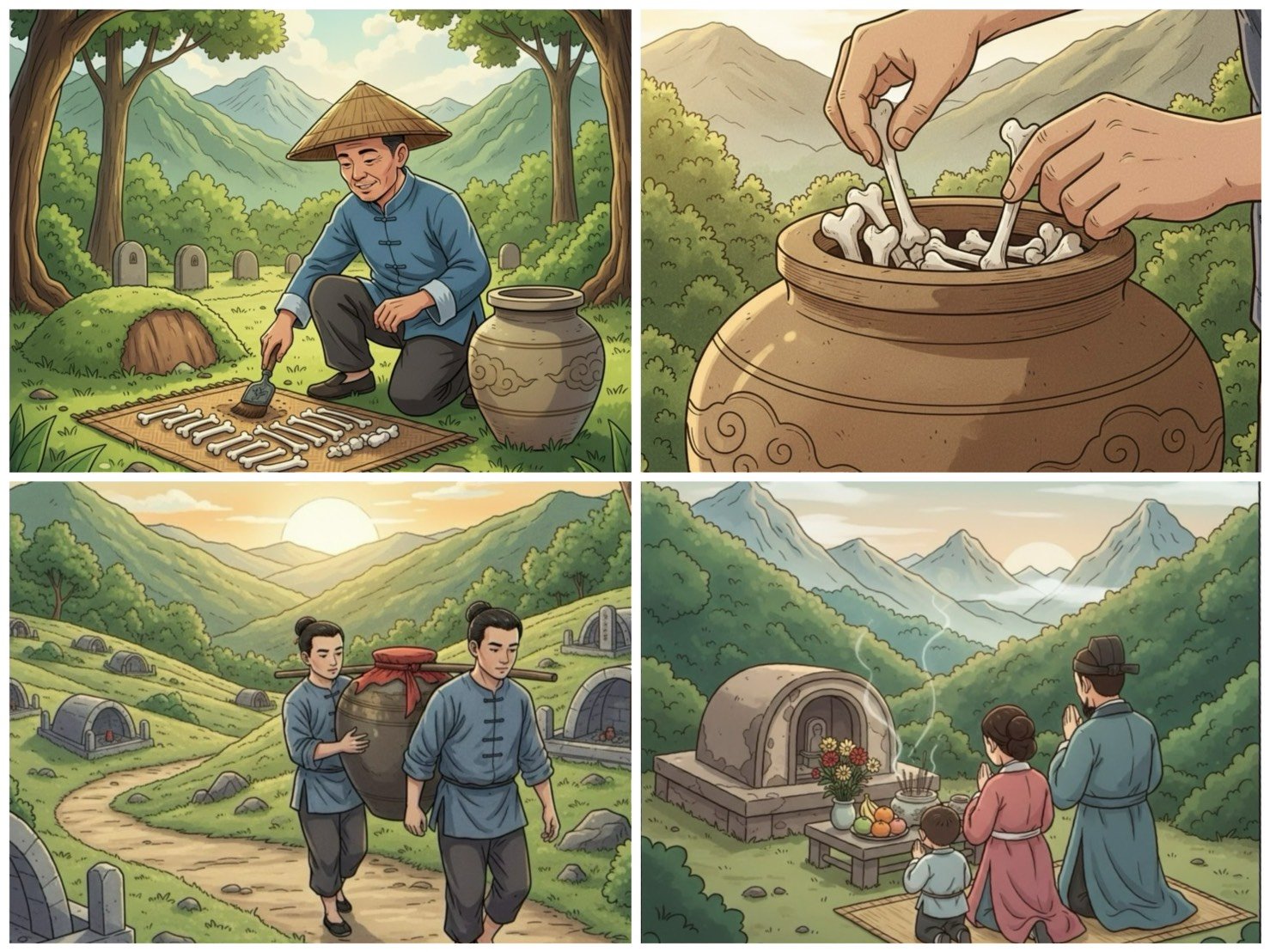 這是一種二次葬,完成後金甕會被遷至納骨塔、祖墳或新的墓地,