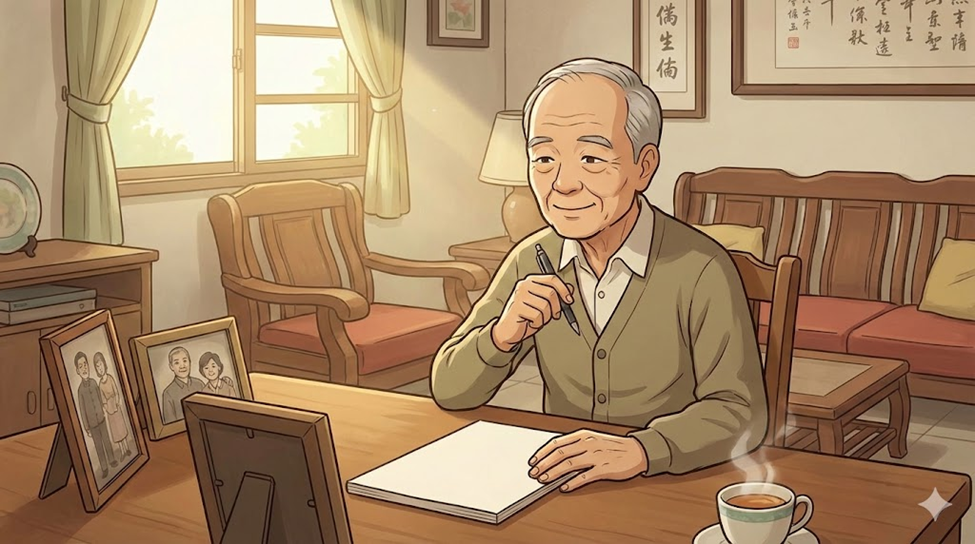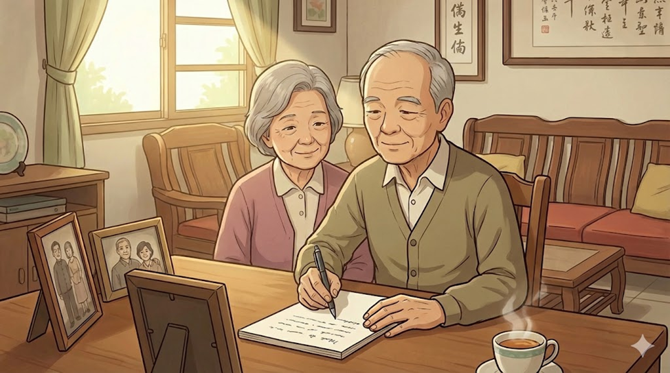 一個午後,一位長者在台灣溫馨的家中,決定為心愛的家人寫下最後的叮嚀。這不僅是一份法律文件,更是一封充滿愛與智慧的家書。